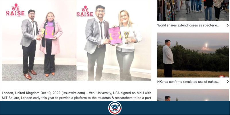 On October 10, 2022, Veni Creator Christian University (VCCU) – USA was featured in several international media. The news covered the visit of the President of VCCU (Dr. Acilina Candeia) and the Rector (Dr. Amanda Lucena) to London, UK.